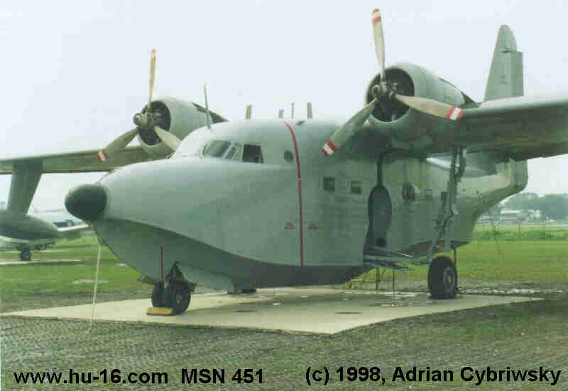 | 1 | G008 | 11012 Taiwan/China ![]() Chiayi, Taiwan RCKU - 23°27'42"N / 120°23'34"E Taiwan/China 11012 Confirmed: Apr 97 Oldest known Albatross 2 | G026 | 48607 Phillipines ![]() (c)Ron Mak Villamor Air Base Pasay 1309 Philippines (02) 8323498 Joint use with Ninoy Aquino Int'l Manila, Phillipines RPLL - 14°30'31"N / 121°01'10"E Phillipines 48607 Confirmed: May 99 3 | G034 | 11023 Taiwan/China ![]() (c) S.L. Tsai Kangshan AFB No. Sisou 1, Jieshou W. Rd. Gangshan Township Kaohsiung County 820 Taiwan, R.O.C Taiwan RCAY - 22°46'57"N / 120°15'44"E (07)625-4167 cafa81@cc.cafa.edu.tw Taiwan/China 11023 Confirmed: Apr 97 4 | G037 | (6534) 6529 Brazil ![]() Av Marechal Fontenelle, 2000 Campos dos Afonsos Marechal Hermes 21740-000 Rio de Janiero, Brazil 021-375-5212/5213/5214 SBAF - 22°52'30.3"S / 043°23'04.95"W Website Brazil 6534 repainted as 6529 Confirmed: Jan 99 5 | G047 | 11024 Taiwan/China ![]() P.O. Box No. 9 CKS Int'l Airport Post Office Taoyuan County 337, Taiwan (R.O.C.) 886-3-398-2179 886-3-398-2222 Fax: 886-3-398-2677 www.cksairport.gov.tw tgp25013@cksairport.gov.tw RCSS - 25°04'11"N / 121°33'06"E Taiwan/China 11024 Confirmed: Apr 97 6 | G062 | 15-2 Italy ![]() (c) 2001, Peter Schwarzer Cameri, Italy LIMN - 45°31'47"N / 008°40'09"E 015-671293 015-21167 Italy 15-2 MM50-174 Confirmed: Jul 01 7 | G064 | BS-02 Argentina ![]() (c) 2001, César Del Gaizo Av Eva Peron (ex Pierrestequi) Moron Provincia de Buenos Airea Phone: 4697-9769/6964 mna@uolsinectis.com.ar SADM - 34°40'38"S/058°38'35"W Argentina BS-02 Confirmed: Feb 2001 USAF 50-176 8 | G065 | 15-4 Italy ![]() (c) Leonardo Lella Lampedusa, Italy LICD - 35°29'52"N / 012°37'5"E 0922-970647 Italy 15-4 MM50-177 Confirmed: Aug 99 Last Italian Albatross 9 | G068 | 15-5 Italy ![]() (c) Phil Callihan Vigna di Valle Airport (Closed) 00062 Vigna di Valle Roma Italy LIRB - 42°05'00"N / 012°13'00"E 39-6-9024034 39-6-9023975 Website Italy 15-5 MM50-179 Confirmed 10 | G069 | 15-6 France ![]() (c) 2001, Peter Schwarzer Biscarosse, France LIMZ - 44°32'47"N / 007°37'20"E Italy 15-6 MM50-180 Confirmed Aug 2000 11 | G072 | 15-7 Italy ![]() (c) 2004, Leonard Lella via Domitiana km 25,900 Mondraone-Caserta Italy 0823 - 761440 Fax: 0823 - 761365 015-671293 015-21167 info@ditellandia.com Italy 15-7 MM50-182 Confirmed: May 04 12 | G079 | 51-006 NE ![]() PO Box 70 South Bend, NE 68058-0070 Mahoney State Park exit Off I-80 Between Omaha & Lincoln, NE 402-944-3100 402-292-2001 KOFF - 41°07'10"N / 095°54'31"W Unofficial Website USAF 51-006 Confirmed: Jan 99 13 | G096 | 51-022 AZ ![]() 6000 East Valencia Rd Tucson, AZ 85706 520-574-0462 or 520-574-0646 Fax: 520-574-9238 KDMA - 32°10'00"N / 110°52'59"W USAF 51-022 Confirmed: Jan 99 Only SA-16A on display in USA 14 | G098 | 570 Chile ![]() National Museum of Aviation & Space Pedro Aguirre Cerda 5000 Los Cerrillos, Chile 538-1919 942-4708 942-4698 - Fax museoaeronautico@manquehue.net SCTI - 33°29'52"S/070°41'53"W Tues-Sun 1000-1730 Bus Route 358 from Estacion Central Chile 570 Confirmed: Jan 99 Last Chilean Albatross 15 | G109 | 51-034 Argentina ![]() (c) 2002 Dr Sergio Bontti Comandante Espora Base 8107 Base Aeronaval Comandante Espora Bahia Blanca, Argentina 54-02932-487999 54-02932-487992 - Fax muan@rina.ara.mil.ar SAZB - 38°43'30"S/062°10'9"W M-F 0900-1600, SU 1500-1900 Argentina BS-03 Confirmed: Oct 02 In Restoration 16 | 110 | 15-8 Italy ![]() Rome, Italy LIRA - 41°47'58"N / 012°35'42"E Italy 15-8 MM51-035 Confirmed 17 | G112 | 15-9 Italy ![]() (c) 2002 Peter Schwarzer Italy LIPG - 45°57'00"N / 013°38'00"E 0481-20744 Italy 15-9 MM50-174 Confirmed: Sep 2002 18 | G147 | 10068 Greece ![]() Dekelia AB TGA 1010 Tatoi Greece LGTT - 38°06'32"N / 023°46'00"E 30-1-8074712 x784 10068 Confirmed: Aug 99 USAF 51-068 19 | G149 | 10070 Greece ![]() (c) 2003, Themis Vranas Greece LGEL - 38°04'16"N / 023°33'29"E 10070 Confirmed: Jul 01 USAF 51-070 20 | G153 | 9911 Japan ![]() 5-1 Shimogiri-cho Kakamigahara City, Gifu Japan 504-0924 Tel: 0583-86-8500 Fax: 0583-86-9912 kokuuchu@city.kakamigahara.gifu.jp RJNG - 35°23'39"N / 136°52'11"E Japan 9911 Confirmed: Jan 99 The UF-XS is an UF-1 Albatross that was converted by Shin Meiwa as a prototype for the PS-1 Flying boat. 21 | G163 | 51-5282 OH ![]() Wright Patterson AFB, OH 6 mi NE Dayton, OH 937-255-4704 KFFO - 39°49'30"N / 084°02'47"W Unofficial Website For Research Appointments/requests United States Air Force Museum/MUA Research Division 2601 E St Wright-Patterson AFB, OH 45433-7609 937-255-4644 ext 730 Fax: 937-255-9204 USAF 51-5282 Confirmed: Jan 99 Last operational USAF Albatross Research Facility/Library 22 | G171 | 15289 Greece ![]() (c) 2004, Kostas Pantios Dekeieias AB TGA 1010 Tatoi Greece 01-8074712 X784 LGTT - 38°06'32"N / 023°47'06"E 15289 Moved from Elefsis to Tatoi Confirmed: Nov 04 USAF 51-5289 23 | G174 | 51-5292 AZ ![]() Currently in storage at Mesa, AZ KFFZ - 33°27'39"N / 111°43'42"W USAF 51-5292 Confirmed: Jan 99 24 | G183 | AN.1B-13 Spain ![]() Spain LEMO - 37°10'30"N / 005°36'58"W Spain AN.1B-13 Unconfirmed Norway KK-A USAF 51-5300 25 | G187 | AD-1B-8 Spain ![]() Paseo de Extremadura Km 10,500 28024 Madrid Spain 34-91-509-16-90 Fax: 34-91-710-68-47 Spain AD-1B-8 Confirmed: Mar 99 USAF 51-5304 26 | G194 | 51-7144 GA ![]() Robins AFB PO Box 2469 Warner Robins, GA 31099 Exit 45 off of I-75 478-926-6870 478-923-6600 KWRB - 32°38'25"N / 083°35'30"W Website USAF 51-7144 Confirmed: Jan 99 Research/Archive Center 27 | G213 | 51-7163 CA ![]() (c) Peter Schwarzer Atwater, CA 209-723-2178 Former Castle AFB Dick Koetke - Historian KMER - 37°22'50"` / 120°34'05"W Website Website USAF 51-7163 Confirmed: Jan 99 Not officially part of museum collection 28 | G226 | 51-7176 TX ![]() Bourland Airport 18501 Hwy 377 S Cresson, TX 76035 817-396-4305 Historian - Jim Peel 817-332-1161 Fax: 817-332-2340 50F - 32°34'54"N / W097°35'26"W USAF 51-7176 Confirmed: Jan 99 143rd Special Ops Group Moved to CGAS St Petersburg, restored and put 